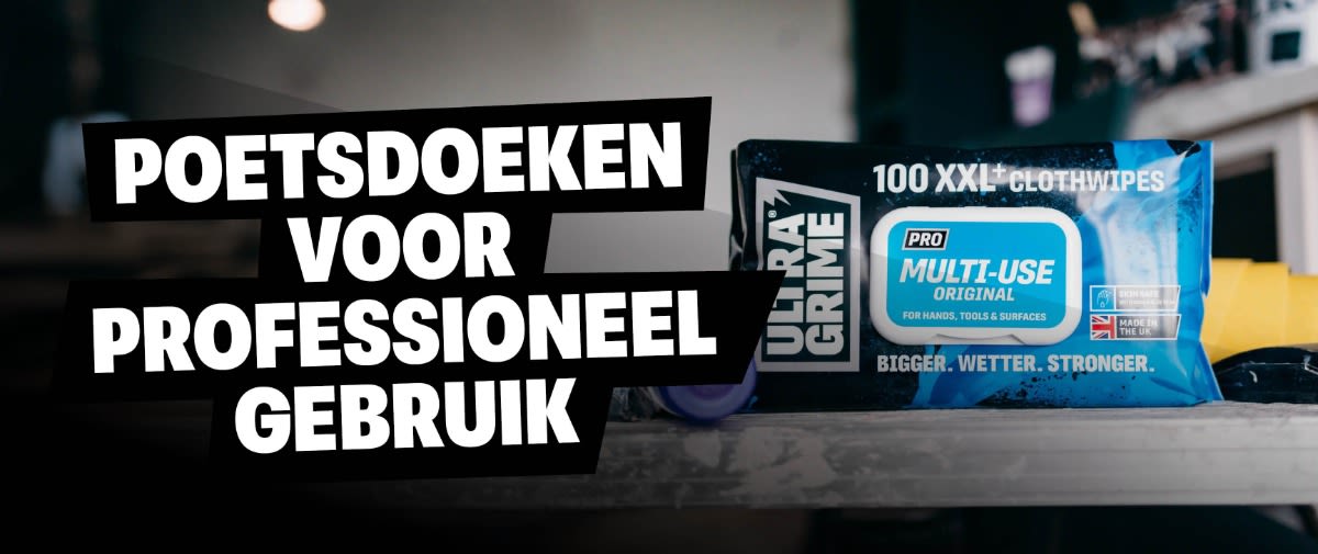Als officieel distributeur van UltraGrime bieden wij een breed assortiment professionele doekjes aan. Van Multi-Use Clothwipes voor dagelijks gebruik tot XXL Clothwipes: groter, natter en sterker dan standaard doekjes. Met UltraGrime reinigt u snel en eenvoudig handen, gereedschap en oppervlakken. Het perfecte doekje voor elke professional, nu bij ons verkrijgbaar.